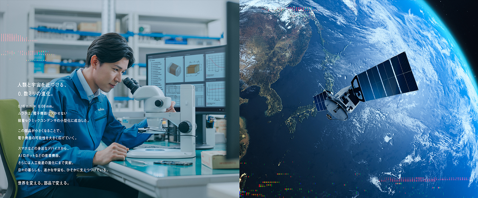 今回の企業広告の目的は、コンデンサやセンサなどムラタの電子部品が身近な暮らしから一歩先ゆく未来まで、世界の進化に貢献していること伝え、グローバルNo.1部品メーカーという企業イメージを形成すること。