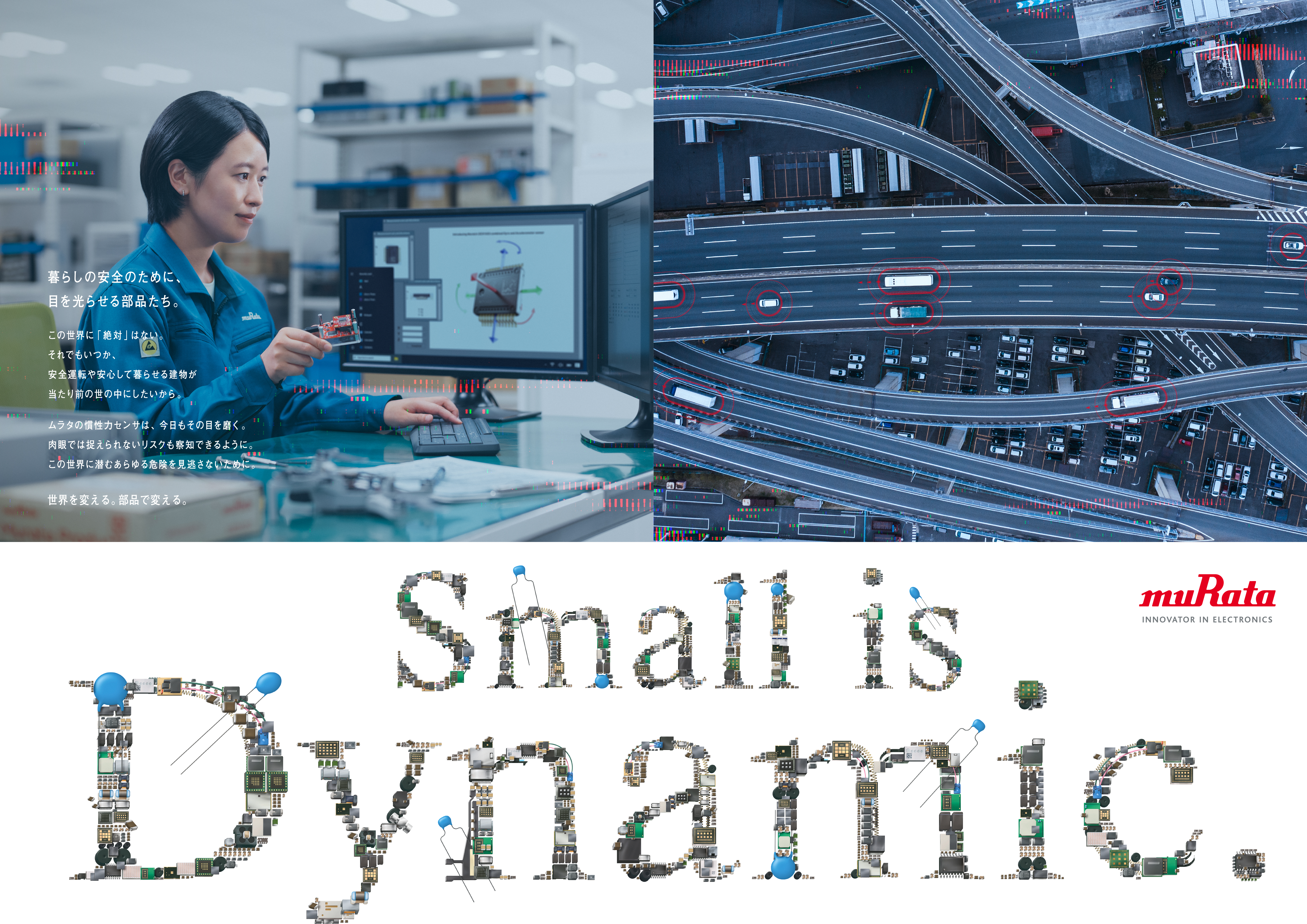 そのために「小さな部品で、大きなことを成し遂げていく」ムラタの事業を「Small is Dynamic.」というキーメッセージで表現。
